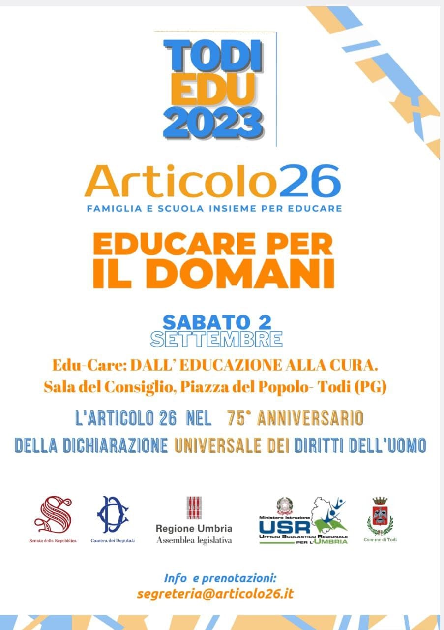 You are at:Home»Dall'associazione»TODIEDU 2023 – 2 Settembre a Todi: patrocini e relatori